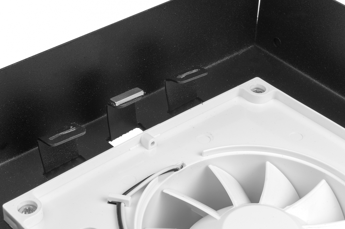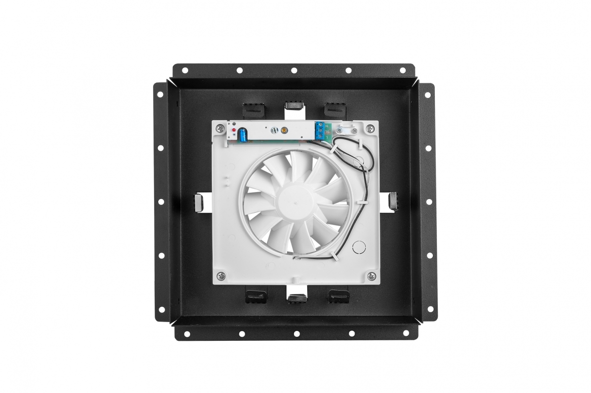 Решетка скрытого монтажа FoZa ПОД ПЛИТКУ 207х207 с вентилятором 100СНК, обратный клапан, таймер+датчик влажности, черная, 100мм